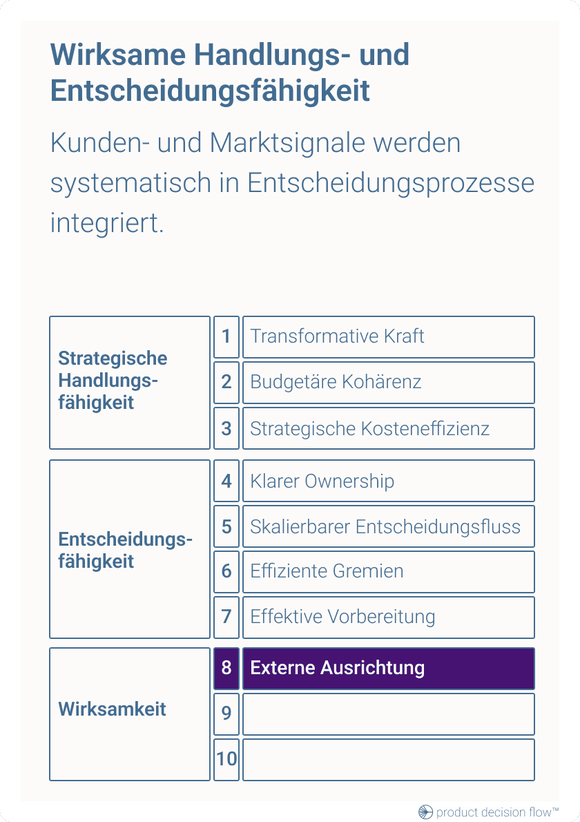 Je stärker die organisatorische Realität von diesen Merkmalen abweicht, desto größer werden Reibungsverluste, Verzögerungen und Abweichungen zwischen strategischer Ambition und operativer Realität.